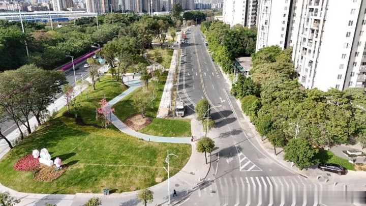 项目在广园路边建设了5.1万平米的绿化公园、1900米健身步道、10个坐凳、5处休憩点、2处康体设施、1个风雨亭,为居民提供更宜居的休闲空间,附近居民反馈“绿树多、环境好,是散步遛娃的好去处”,体现了城市公共空间的焕新升级。